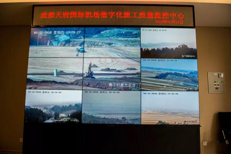 記者在成都天府國(guó)際機(jī)場(chǎng)數(shù)字化施工質(zhì)量監(jiān)控中心看到,大屏幕上一共有9個(gè)分屏顯示建設(shè)現(xiàn)場(chǎng)的施工狀態(tài)。工作人員介紹說(shuō),施工現(xiàn)場(chǎng)一共安裝了3組高清攝像頭,基本涵蓋了整個(gè)飛行區(qū)工程建設(shè)現(xiàn)場(chǎng)。每一組都是由激光云臺(tái)、球機(jī)和槍機(jī)構(gòu)成,實(shí)現(xiàn)了全場(chǎng)動(dòng)態(tài)監(jiān)控。激光云臺(tái)做360度旋轉(zhuǎn),如果視線好的話,可以拍攝3~5公里的距離,可以縮放和旋轉(zhuǎn),相當(dāng)于是工地上的望遠(yuǎn)鏡;球機(jī)則根據(jù)事先設(shè)定的拍攝點(diǎn),每隔一個(gè)任意設(shè)定的時(shí)間就自動(dòng)跳轉(zhuǎn)到下一個(gè)拍攝點(diǎn)進(jìn)行拍攝;槍機(jī)主要拍攝120度大場(chǎng)面,類似魚(yú)眼鏡頭,也可以拉近拍攝。槍球聯(lián)動(dòng),互相補(bǔ)充。